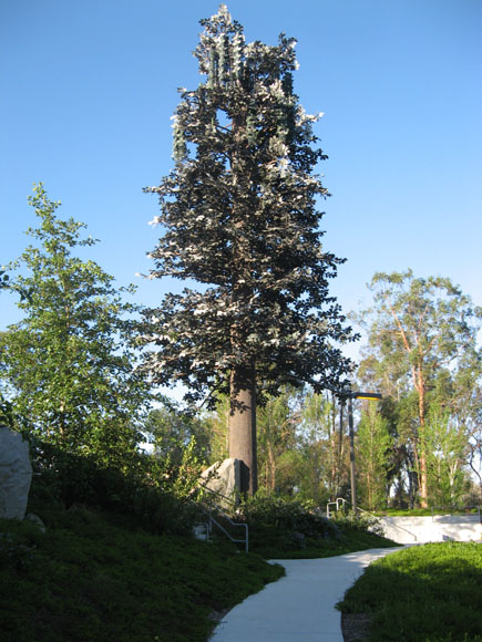 On my early morning walk I went to the pond in the park and saw two strange trees. Upon closer inspection I noticed they were telephone antenna towers.