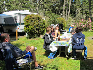 Rick, Lynda’s husband arrived early afternoon with the big family dog and we went to Old Town in Bandon. After sampling the chocolates at Cranberry Sweets we drove out of town and checked out the RV Park where we will have a large family reunion in August. All of Doris’s children will be there and family friends, who were former neighbors.